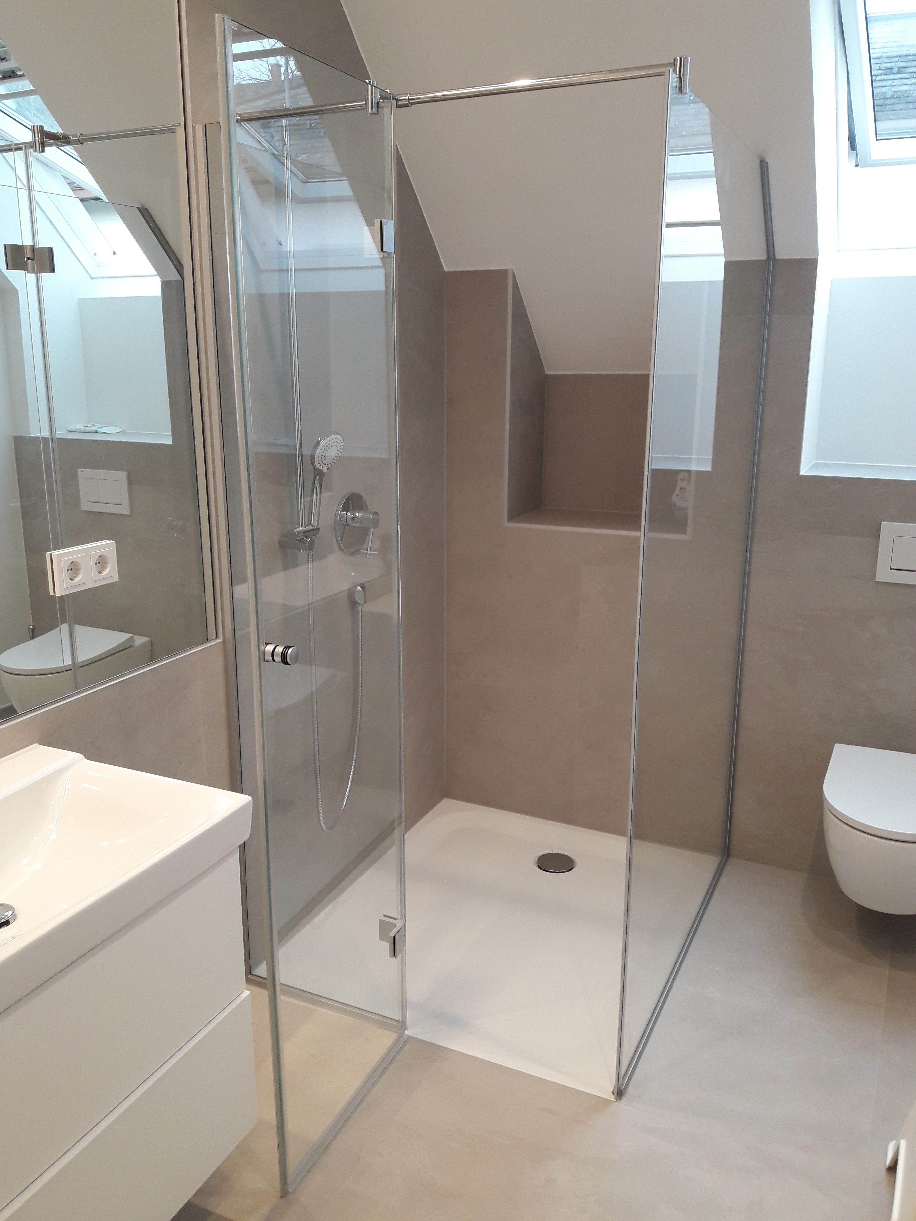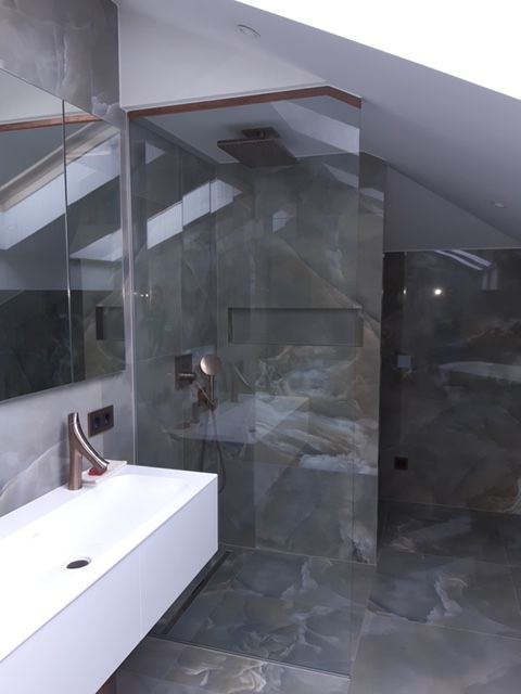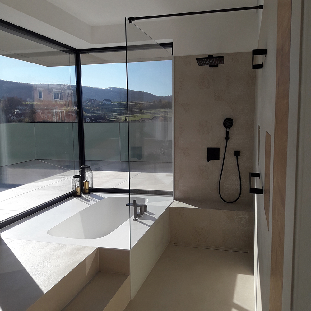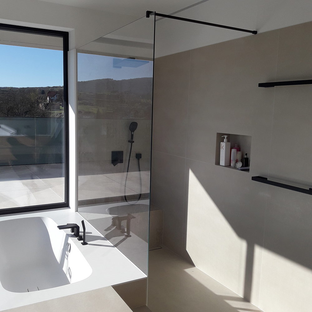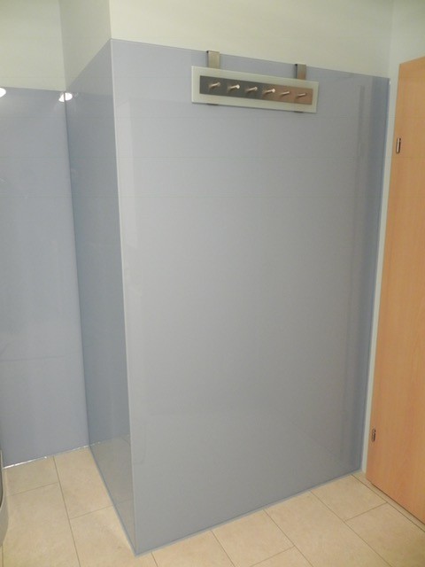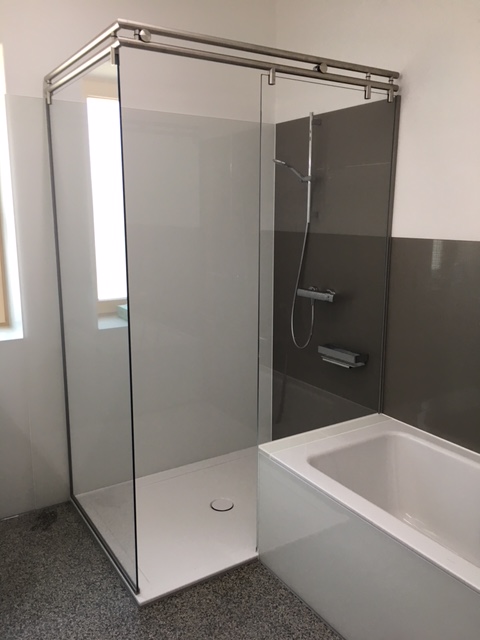Glasdusche mit Glasrückwand