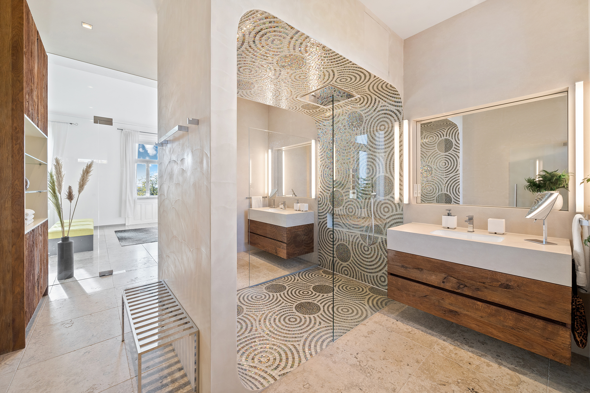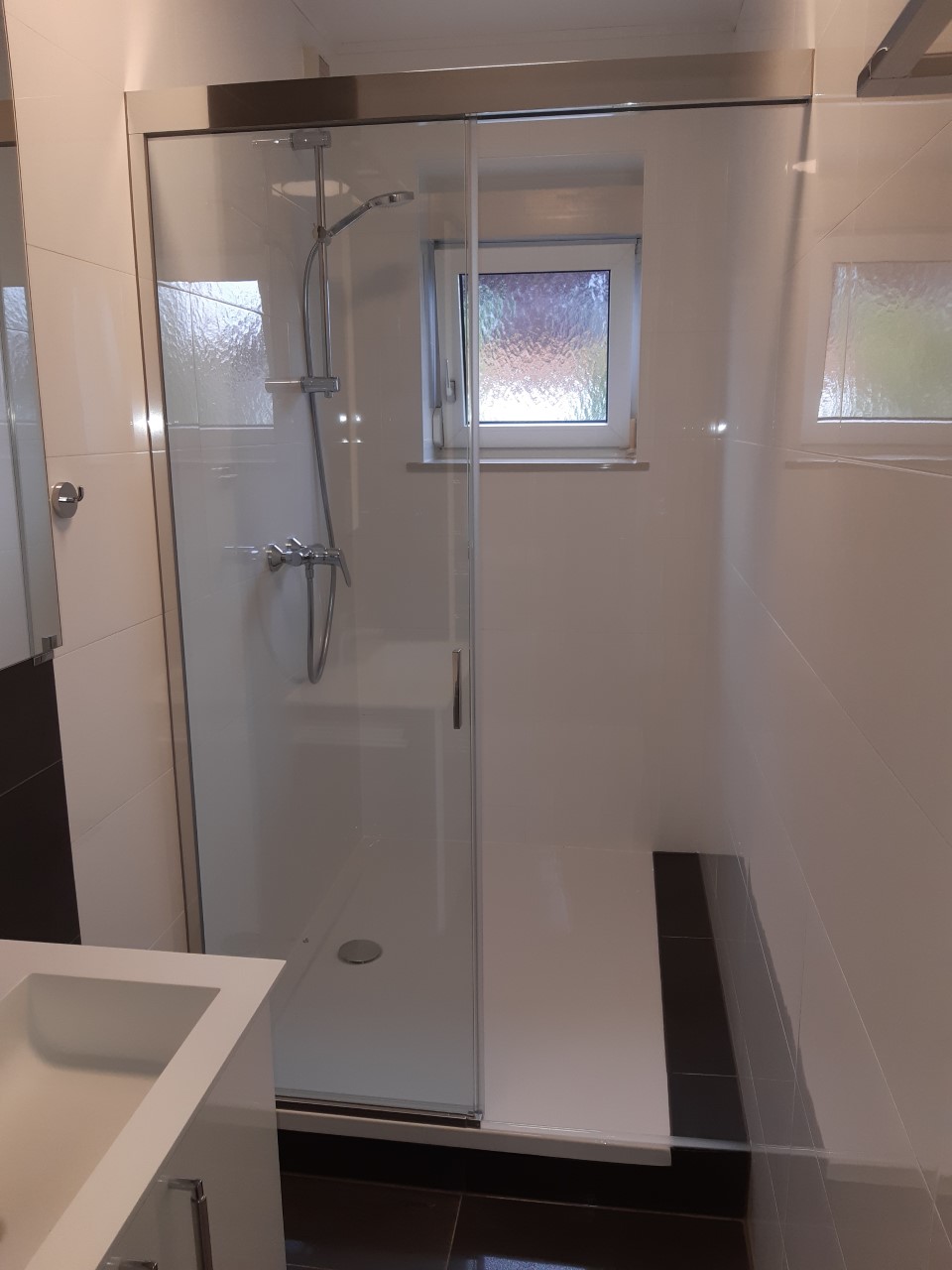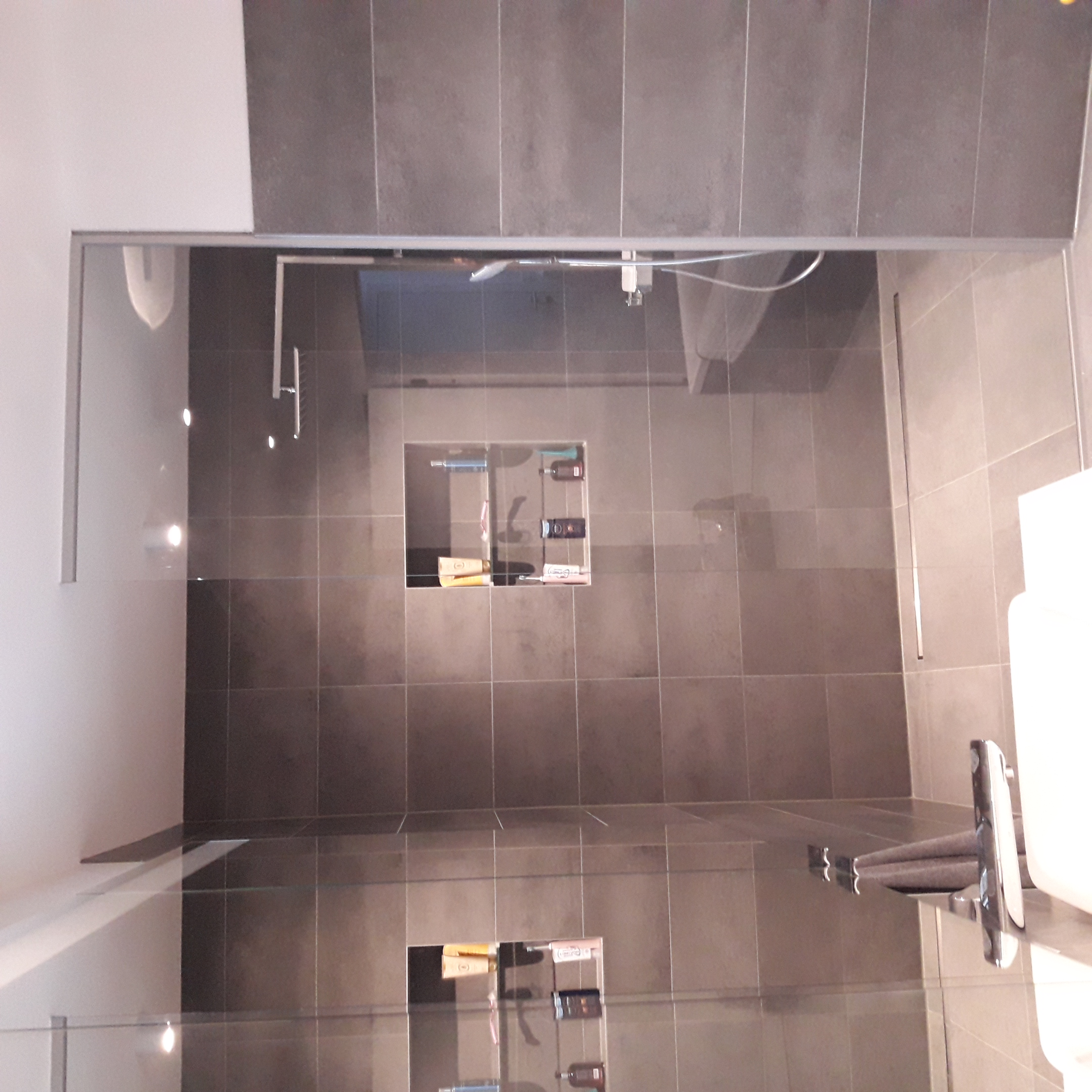 Glasdusche mit Glasrückwand