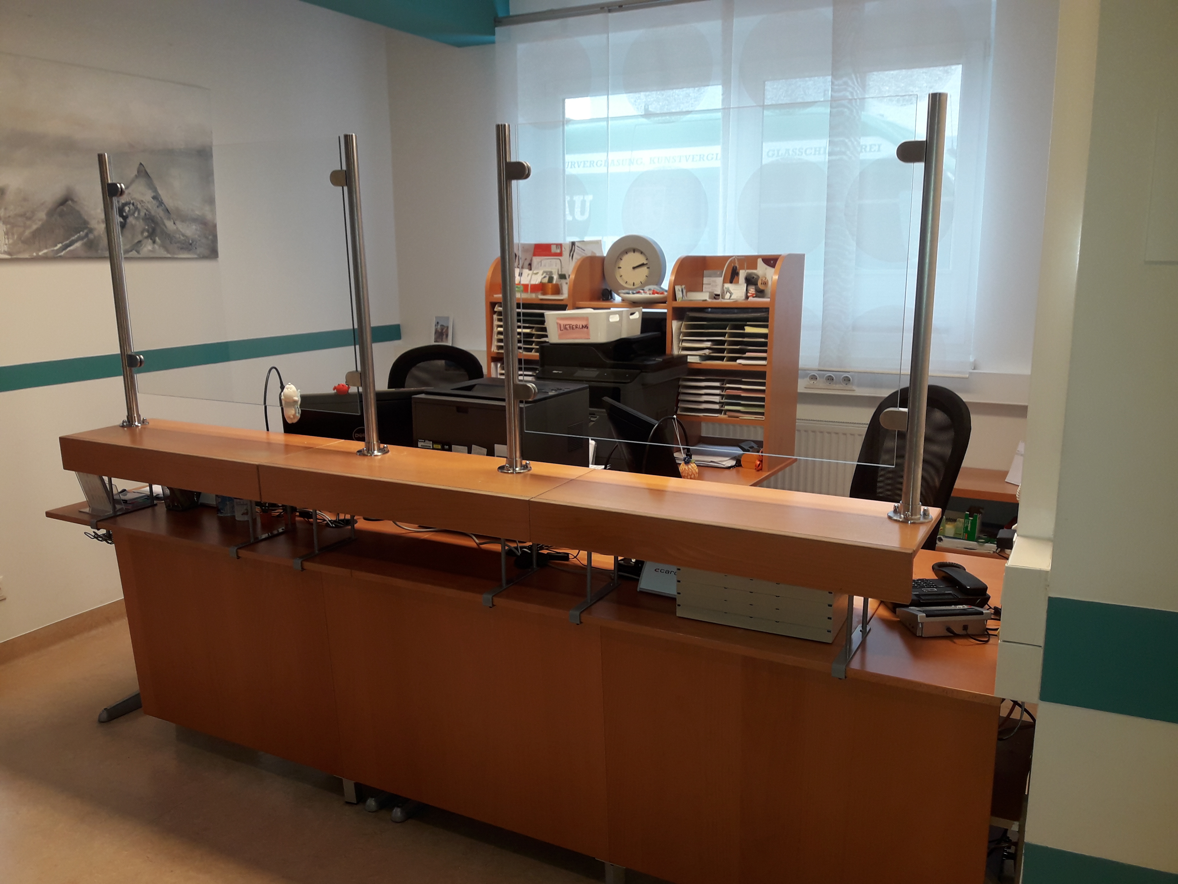 Spuckschutz aus Glas mit Messingstehern
