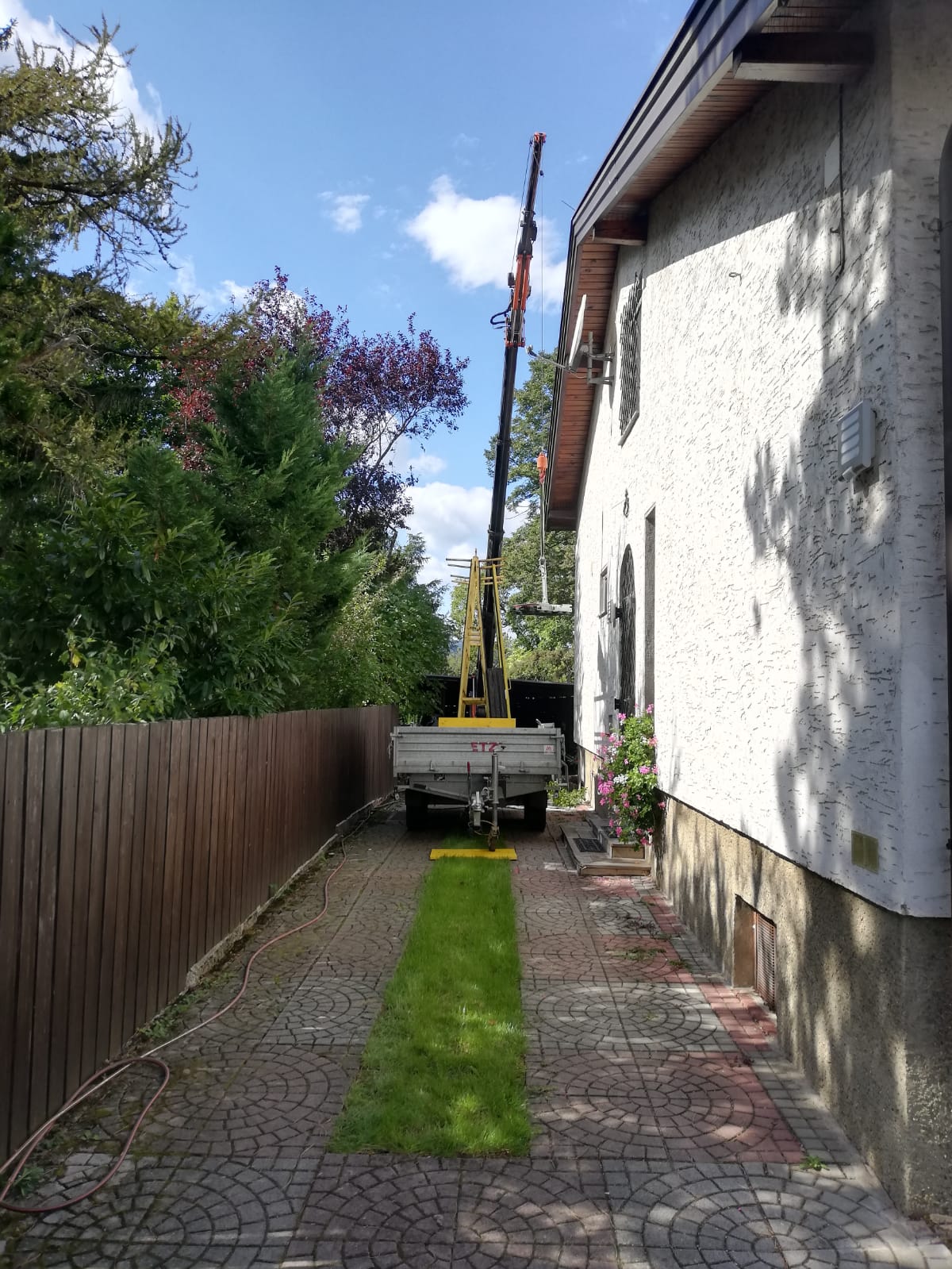 Wintergartenüberdachung mit Kranmontage