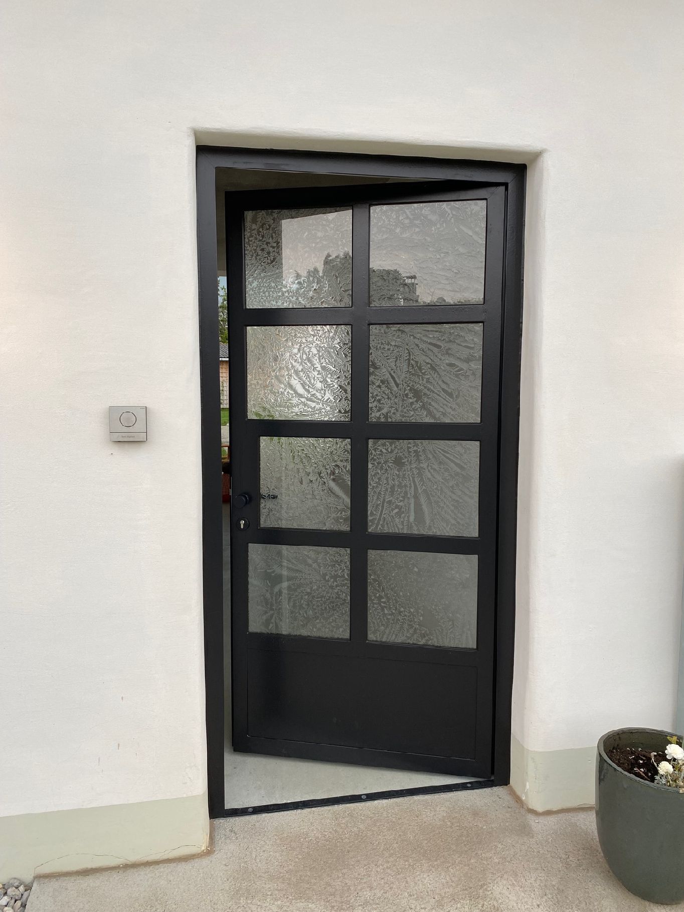 Eisblumenglas in Eingangstüre