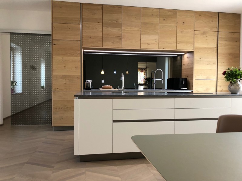 Glasküchenrückwand, Glasschiebetüre